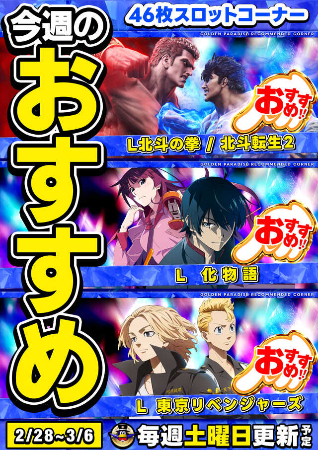 お客様に喜んで頂けるよう今後も努力しつづけます。おもしろさ200パーセント!!ますます躍進しつづけるゴールデンパラダイスを今後とも宜しくお願いします。