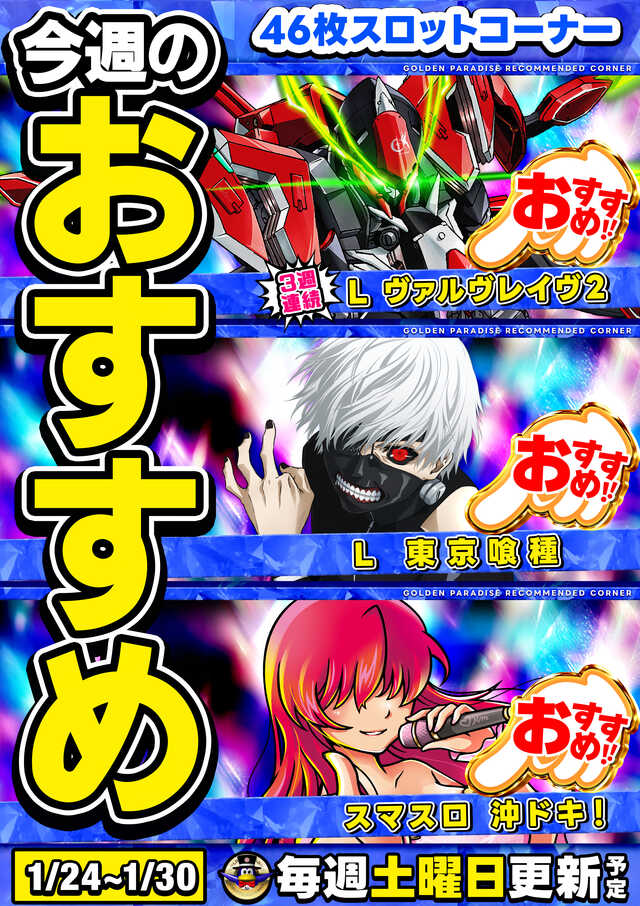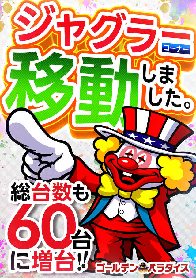 お客様に喜んで頂けるよう今後も努力しつづけます。おもしろさ200パーセント!!ますます躍進しつづけるゴールデンパラダイスを今後とも宜しくお願いします。